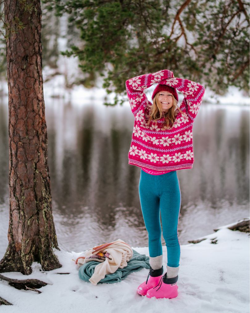 Denne genseren er oversized og har en bevegelsesvidde på ca. 20–25 cm