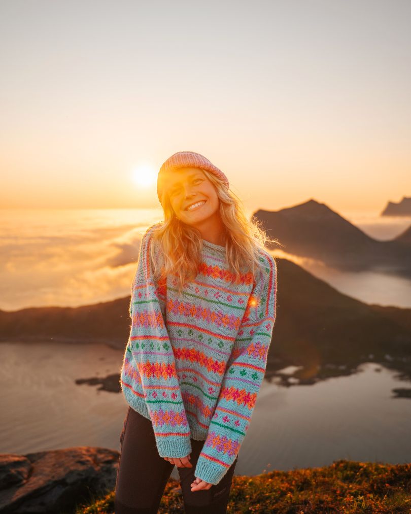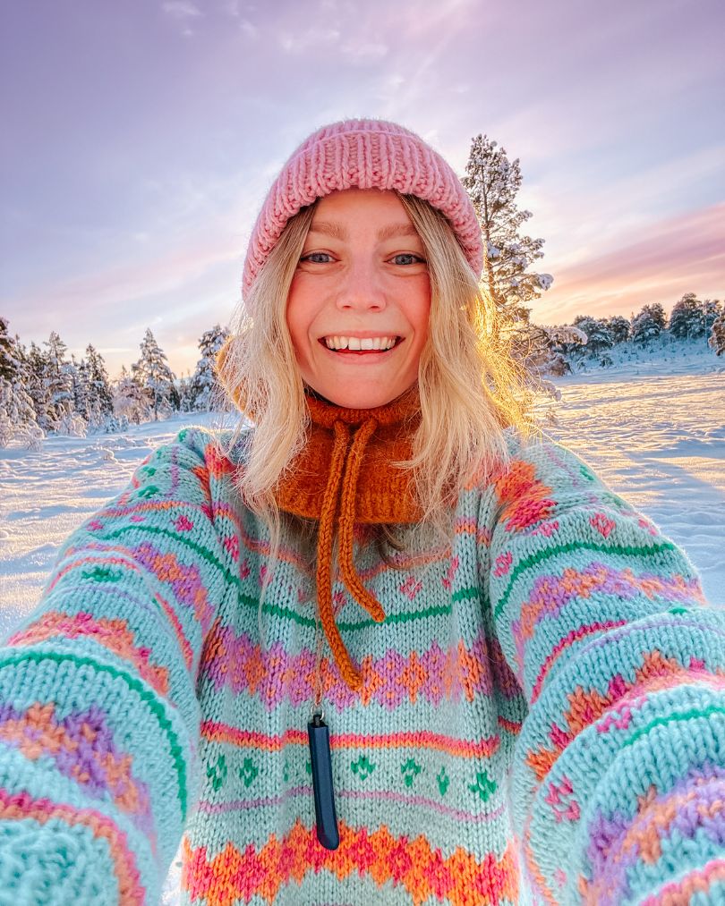 Merk at oppskrift ikke følger med. Denne fås i boka Fargerik turstrikk i str XXS-5XL.