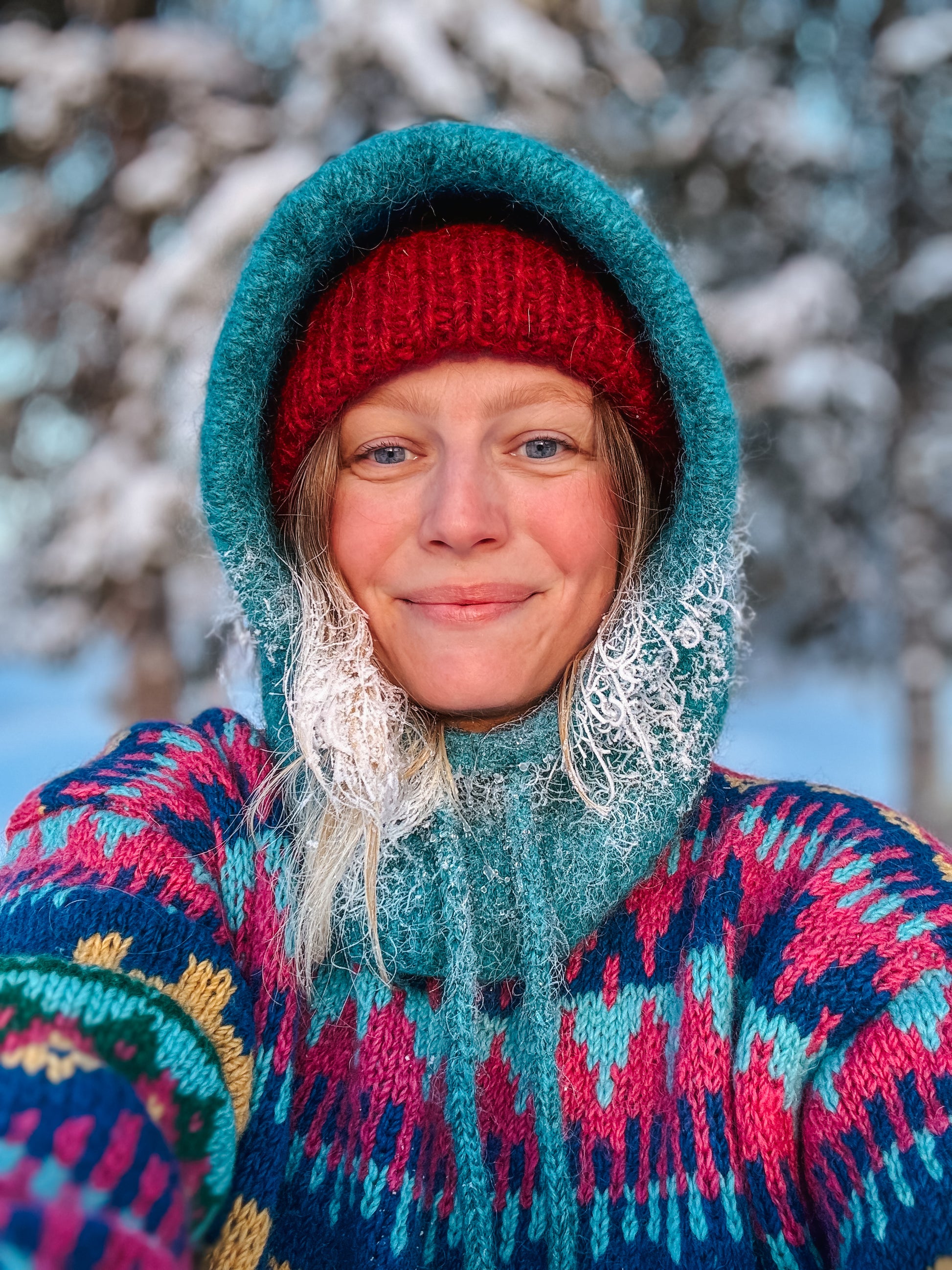 Få pakke med både garn til Bikkjekaldt balaklava og boka Fargerik turstrikk. Oppskriften fås kun i boka.